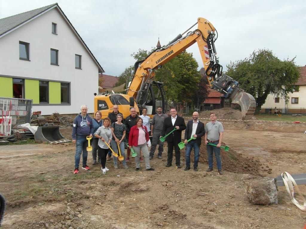 Am 12.10.2023 konnten wir mit Vertretern vom Stadtrat, evangelischer Kirche als Kindergartenträger, Baufirmen und dem Architekturbüro den Spatenstich feiern.